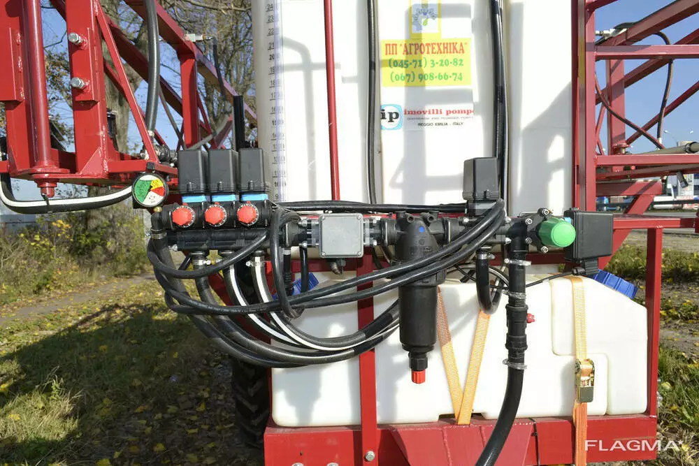 7. Опрыскиватели укомплектованы узлами и рабочими органами ведущих зарубежных фирм : “ARAG”, “Imovilli Pompe”, “Benzi” (Италия), “Lechler” (Германия), что обеспечивает качество работы на уровне мировых аналогов. По желанию заказчика опрыскиватель может быть укомплектован бортовым компьютером, миксером, пенным маркером или навигационной системой GPS, распылителями разных типов и типоразмеров.