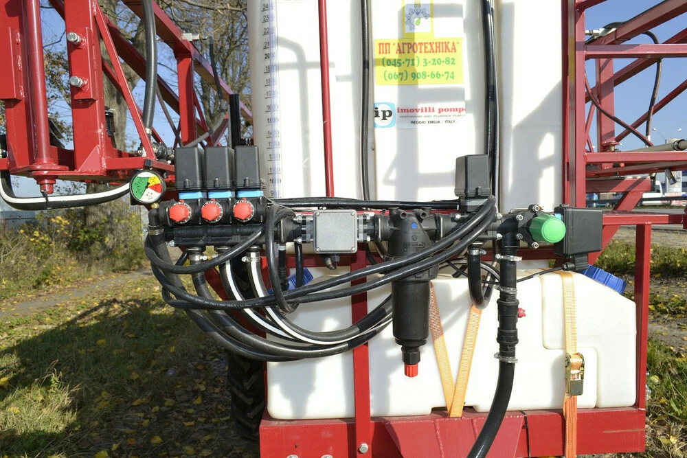 7. Обприскувачі укомплектовані вузлами і робочими органами провідних зарубіжних фірм : "ARAG", "IMOVILLI POMPE", "BENZI" (ІТАЛІЯ), "LECHLER" (НІМЕЧЧИНА), що забезпечує якість роботи на рівні світових аналогів. За бажанням замовника обприскувач може бути укомплектований бортовим комп " ютером, міксером, пінним маркером або навігаційною системою GPS, розпилювачами різних типів та типорозмірів.