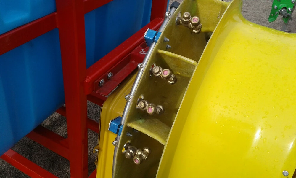 Обприскувач навісний садовий вентиляторний використовується у сільському господарстві, садівництві та квітникарстві в якості пристрою, за допомогою якого вносяться добрива в грунт і обприскуються пестицидами стебла і листя фруктових дерев, а також виноградників. Завдяки спеціально розробленій конструкції і габаритами садовий обприскувач зручний в роботі і легко транспортується. Специфічною особливістю даного агрегату є вбудований вентилятор, який створює завихрення потоку повітря, що дає можливість обприскування оброблюваних культур з усіх боків. Обсяги резервуарів 800 літрів. В обприскувачах використовується насос фірми Tad-Len продуктивністю 100 л/хв. Навісні садові обприскувачі використовуються тільки в парі з трактором чи іншою важкою технікою, тому добре підійдуть для обробки великих садових угідь. Агрегат навішують на трактори та міні-трактори. Сам обприскувач має бак різними обсягами, а також мембранний насос і вентилятор. З допомогою вентилятора створюються такі завихрення потоку, що рідина розпилюється рівномірно, потрапляючи навіть на тильну сторону листка рослини. Обприскувач садовий можуть комплектуватися як польських так і італійським (латуні) розпилювальний обладнанням, в залежності від потреб замовника. Висота розпилення до 6 метрів. Ширина розпилення до 8 метрів
