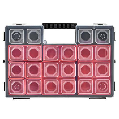Цей органайзер стане вашим незамінним помічником як для домашнього майстра, так і для професіонала. Він дозволяє грамотно організувати зберігання інструментів та дрібних деталей завдяки грамотному поділу на секції.