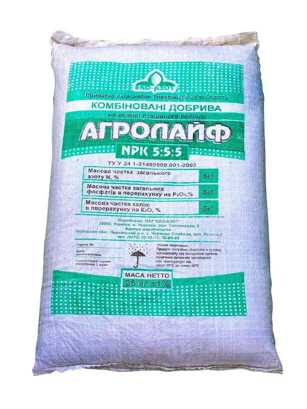 Агрохімічна характеристика: універсальне добриво, отримане шляхом біоферментації курячого посліду з додаванням необхідних мінеральних компонентів та мікроелементів. Обробка при високих температурах гарантує відсутність будь-яких хвороботворних організмів і бур'янів. Технологія виробництва дозволяє сформувати в добривах велику кількість гумінових кислот та ферментів, які покращують структуру та відновлюють родючість ґрунту, сприяє швидкому засвоєнню рослинами поживних речовин, запобігає утворенню нітратів у плодах.