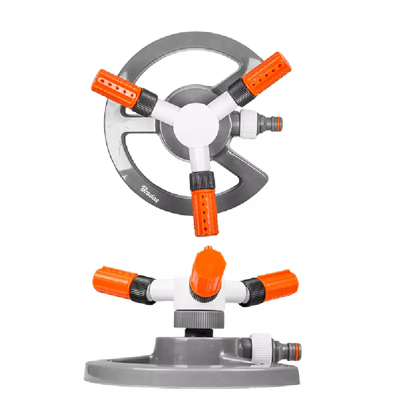 Пластиковий обертовий зрошувач з трьома ріжками, на круглій основі, що забезпечує максимальну стійкість і не пошкоджує дерен, навіть під час інтенсивної роботи. Полікарбонат підвищеної міцності є основним матеріалом з якого виготовлений зрощувач. Ріжки повністю знімаються для очищення форсунок від забруднень.