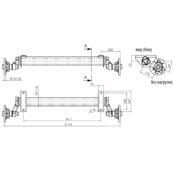Бестормозная торсионная ось AL-KO предназначена для прицепов, с нагрузкой на ось до 1800 кг., и оснащена ступицей 112x5