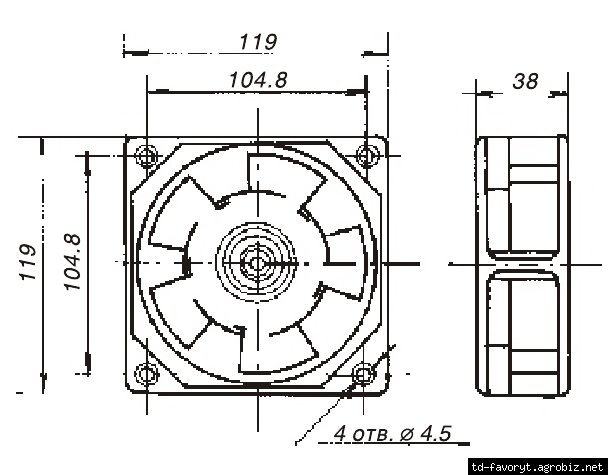 lКорпус вентилятора квадратной формы и имеет внешние радиальные ребра, которые служат для крепления статора. Все типы вентиляторов производятся в различных модификациях, подходящих для присоединения к воздуховодам с сечением 90, 100, 120, 135 и 150 мм.
