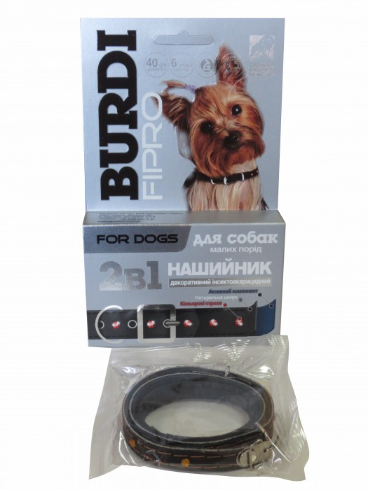 Нашийник декоративний інсекто-акарицидний «Бурді фіпро 2 в 1» випускають для котів довжиною 35 см, для малих порід (до 5 кг) нашийник завдовжки 40 см, для собак середніх та великих порід (5-15 кг) нашийник завдовжки 65 см.