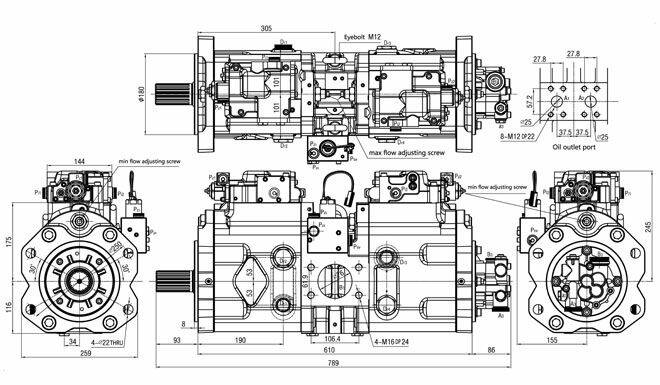 На екскаваторах Volvo EC-290B встановлений основний гідравлічний насос тандемного типу. Для забезпечення тривалого терміну служби цих насосів чистота робочої рідини повинна відповідати ГОСТ 484646 мінімального класу 12. Використовуйте гнучку муфту для з'єднання приводного валу насоса з двигуном. Перед запуском заповніть корпус насоса гідравлічним маслом через отвір корпусу. Насос повинен залишатися заповненим маслом для забезпечення внутрішнього мастила.
