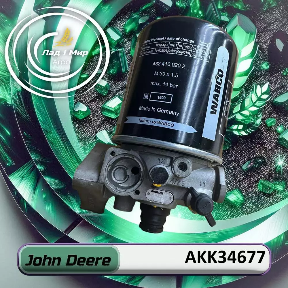 Ви можете замовити агрозапчастини Осушувач повітря AKK34677 до техніки John Deere від виробника John Deere на нашому сайті ladimiragro.com.ua.