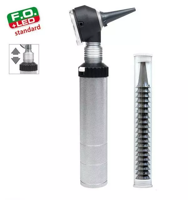 Отоскоп KaWe КОМБІЛАЙТ F.O.30 LED 2,5 В – це функціональний ветеринарний інструмент від німецького виробника, призначений для обстеження слухового проходу та барабанної перетинки у тварин різних порід і розмірів. Прилад оснащений вбудованою LED-підсвіткою, працює від батарейок і має міцний корпус, стійкий до корозії та механічних пошкоджень.