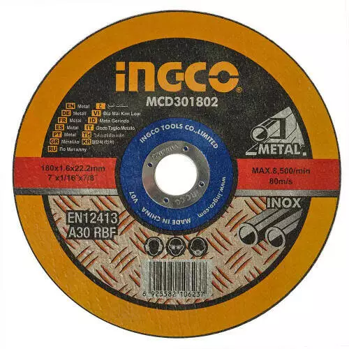 Диск відрізний по металу абразивний 180х1.6*22.2 мм INGCO є змінним елементом для кутових шліфувальних машин.