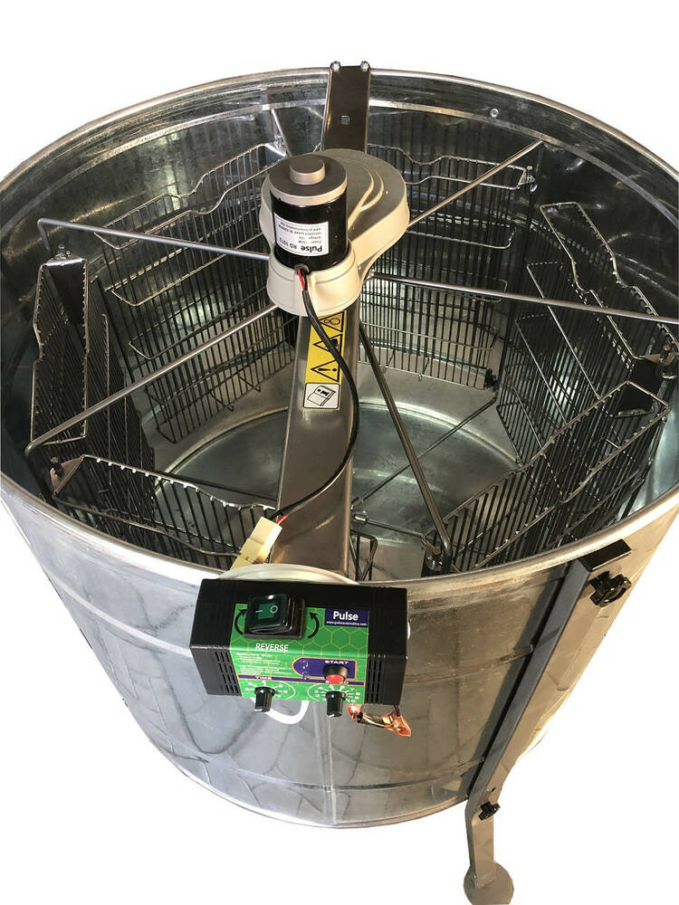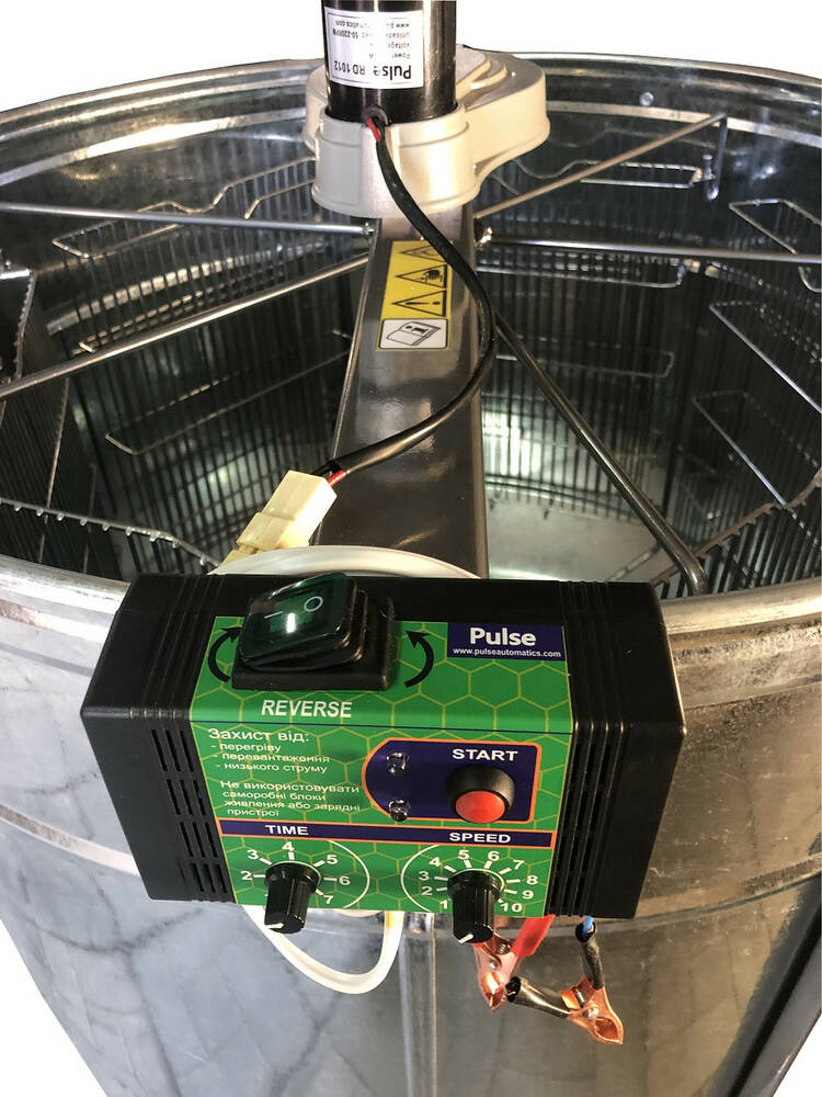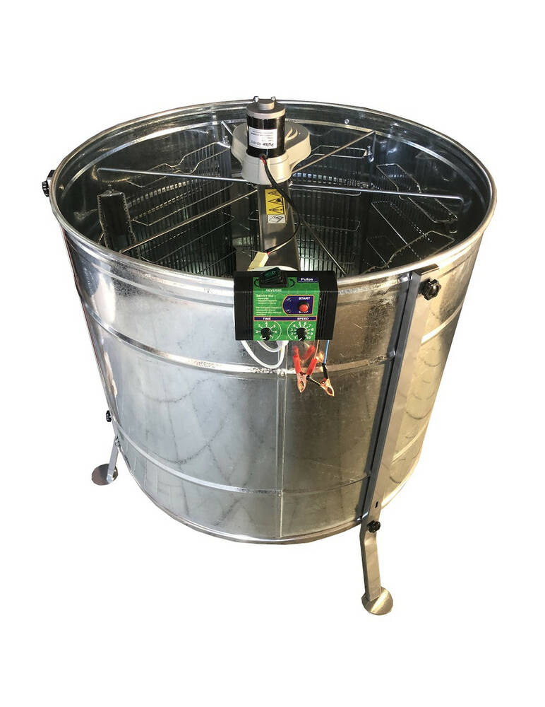 Оцинкована медогонка 6-ти рамкова з ремінним приводом Pulse 100 Ватт. З підставкою