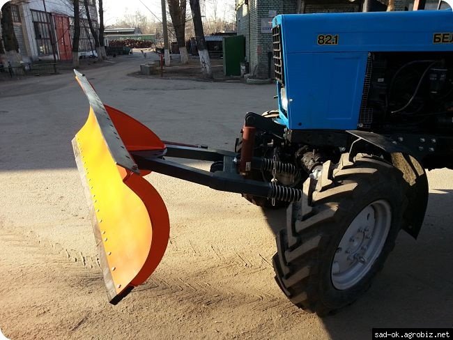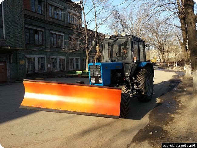 Отвал ОК-2.5 изготовлен с целью механизированной очистки уличных и придорожных участков, тротуаров, а также производственных территорий от снега, песка и т.д. Передний отвал используют в паре с щеткой дорожной.