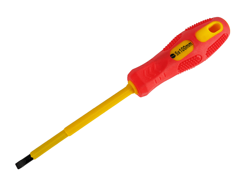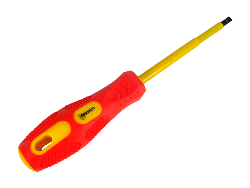 Діелектрична викрутка Lemanso LTL60013 серії Том створена для безпечної роботи з електричними мережами, витримуючи напругу до 380 В завдяки надійному ізоляційному покриттю. Ця модель має плоский наконечник діаметром 5 мм та довжину 100 мм, що робить її зручною для різноманітних електромонтажних робіт, які потребують високої точності та безпеки.