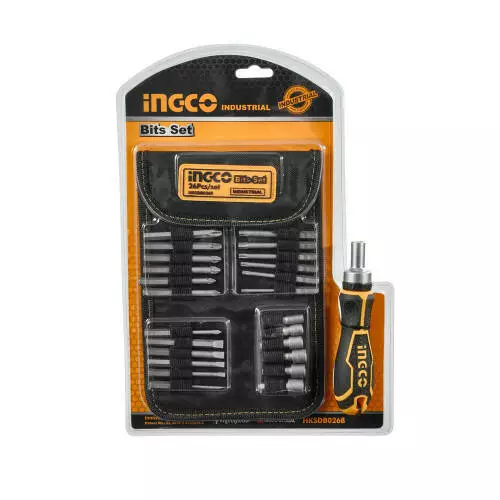 Викрутка з набором насадок і головок 26 шт INGCO призначена для роботи з різними різьбовими з'єднаннями.