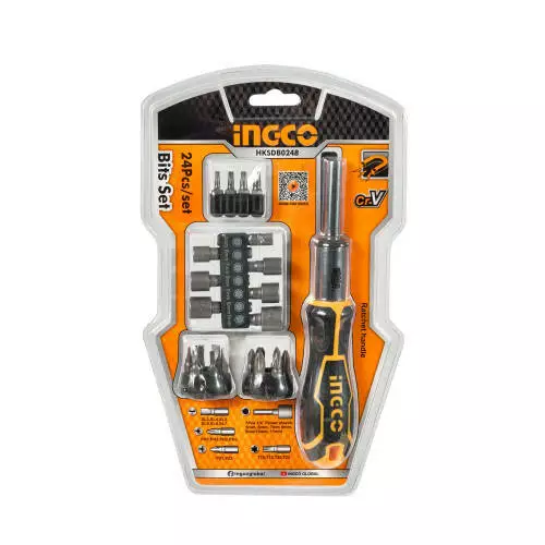 Викрутка-тріскачка з бітами та головками INGCO