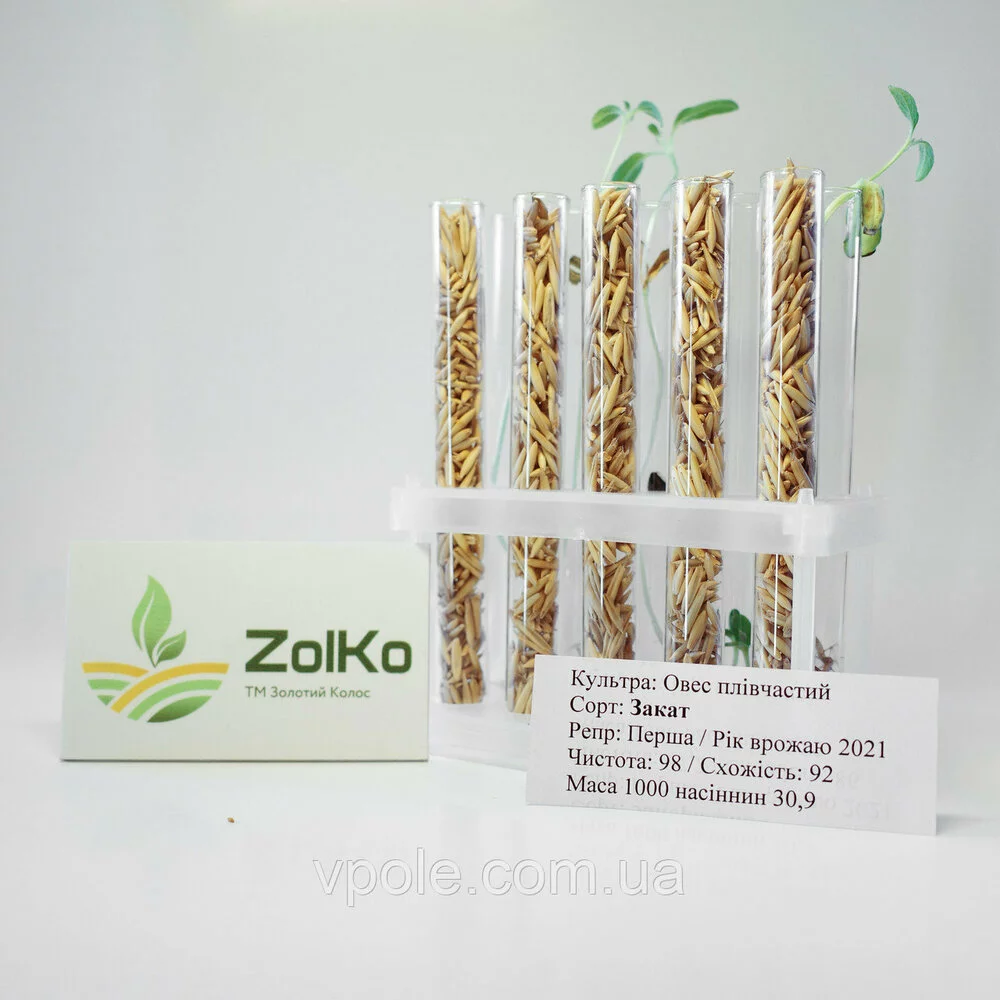 Овес Захід - середньостиглий плівчастий сорт із зерном високої якості та високою врожайністю, у тому числі зеленої маси. В наявності посівний матеріал вівса Захід сонця першої репродукції врожаю 2019 року.