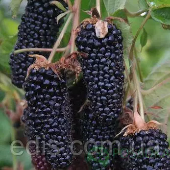 ягоди чорні, видовжені, до 10-15 г, до 2 см в діаметрі;
