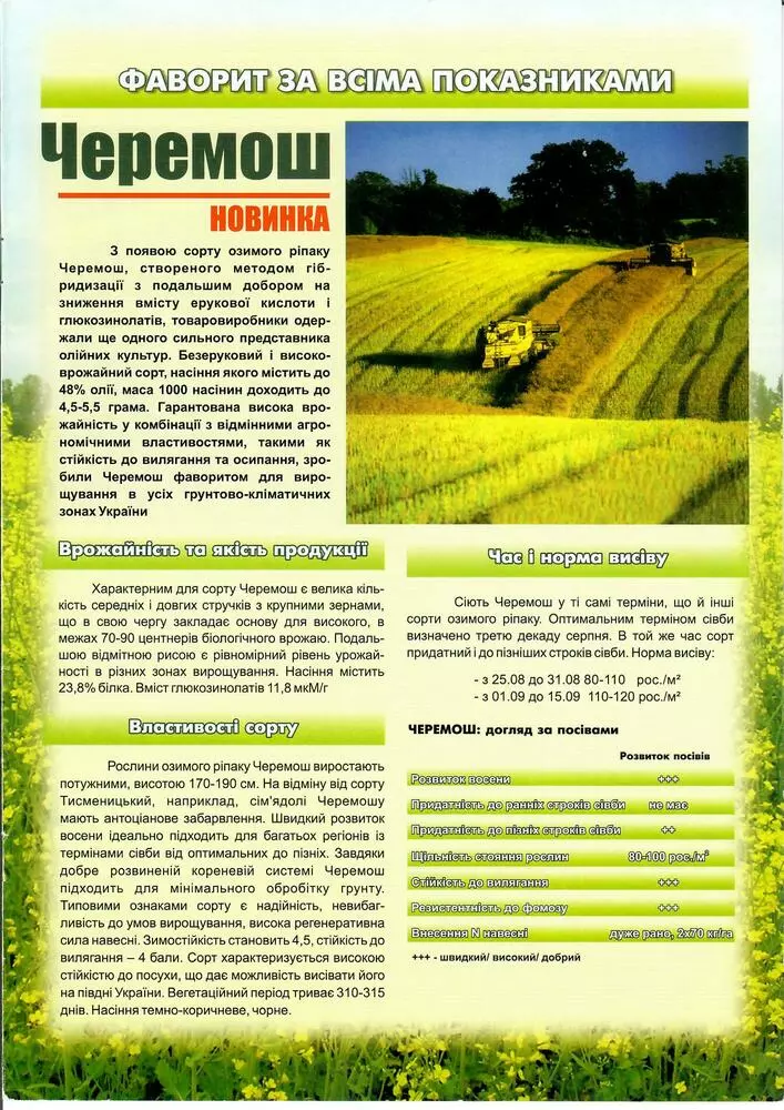 Тому ми пропонуємо лінійку чеських та вітчизняних сортів врожайність яких анітрохи не нижча за гібрид, а п якісних показниках на одному рівні з гібридами.