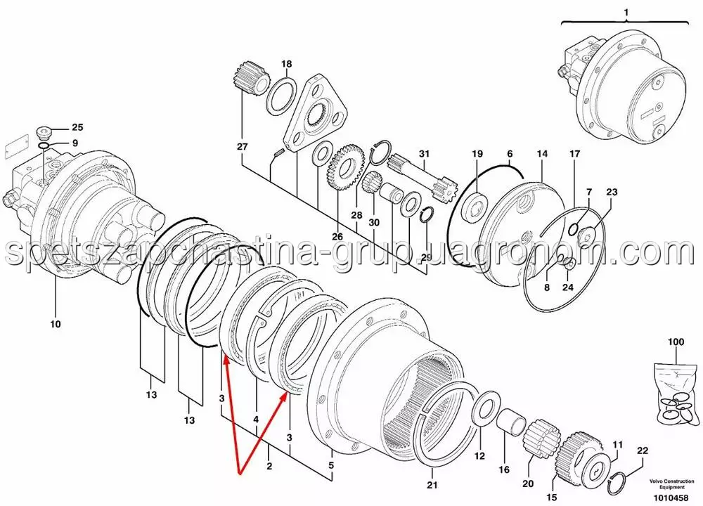 Підшипник редуктор ходу на екскаватор Volvo ECR28
