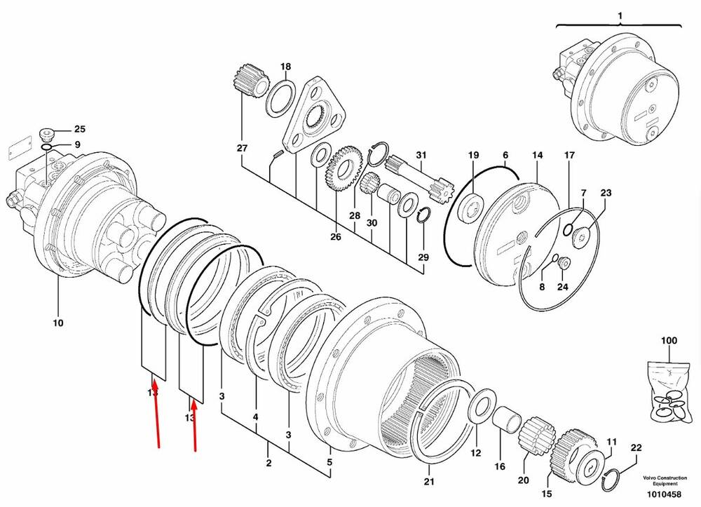 Комплект ущільнень бортового редуктора VOLVO EC30