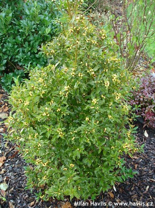 Розмір: Досягає 2м у висоту. 15-річні кущі досягають 1,5 м вис. і 2 м шир.