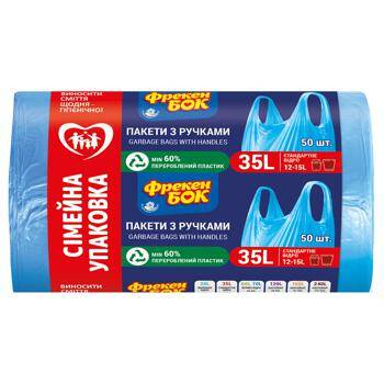 Пакети для сміття Фрекен Бок з ручками (сині) 35л*50шт.