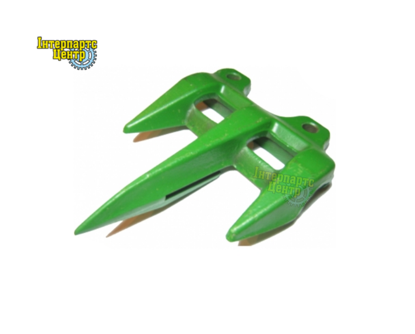 Палець потрійний (соя) пальцевого бруса жниварки зернозбиральних комбайнів John Deere. Розміри мм: довжина 170, ширина 130,кількість отворів кріплення 2, діаметр отворів кріплення 10.5. Частина пальцевого бруса, що забезпечує зрізання стебел зернових при поворотно-поступальному русі коси.