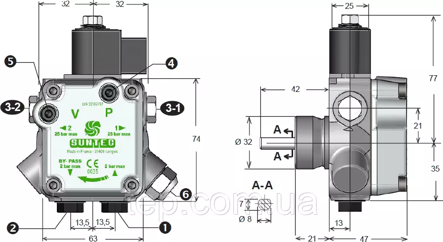 • Сертифіковано TÜV номер проштампонований на кришці насоса