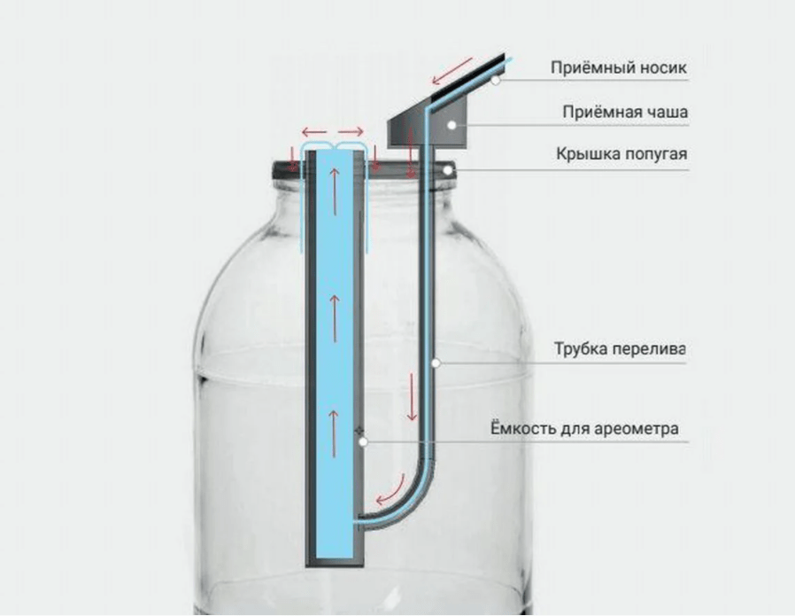 Внутрішній діаметр "Папуги" розрахований як під звичайний спиртомір, так і під професійний ареометр АСП-3.