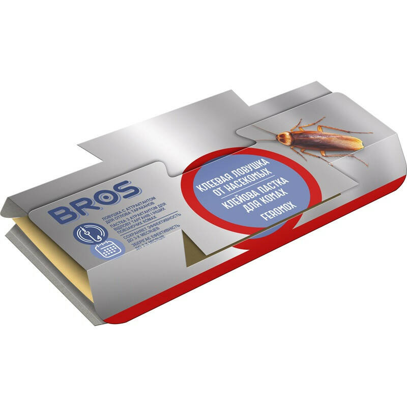 Універсальна пастка Брос використовується для відлову тарганів та інших повзаючих комах на підприємствах, у закладах громадського харчування, складах, садках і в побутових умовах. Робота пастки полягає у приманюванні комах за допомогою спеціального атрактанта. Комахи потрапляють  на липку основу, що складається з клею на основі полібутилену та смол. Одна пастка діє до трьох місяців. Засіб є абсолютно безпечним, тому що не має отруйних речовин у складі. Липка пастка Bros ефективно відловлює тарганів, мурах, прусаків, бліх, цвіркунів, лусниць.