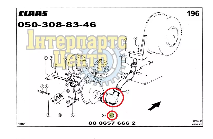 ПАТРУБОК 0006576662, 00 0657 666 1 D90/D140 Claas original