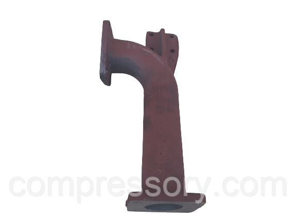 Патрубок холодильника лівий 34.10.00.03-001 (КТ6.10.021-1) компресора КТ-6, КТ-7. КТ-6Ел призначені для приєднання холодильника компресора до самого агрегату компресора. Приєднаються до корпусу клапанної коробки НД і другою стороною до верхньої кришки холодильника, є додаткове кріплення для жорсткості до сполучної пластини холодильника. Виготовляється із матеріалу СЧ20 методом лиття в землю, вага 5,4 кг.