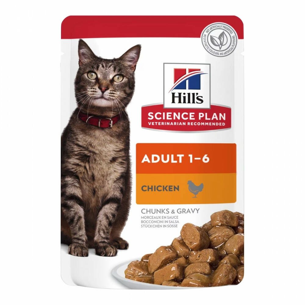 Вологий корм для котів Hill's Science Plan Adult – смаковиті шматочки в соусі, ретельно збалансоване харчування для дорослих котів. Виготовлене з високоякісних і легкозасвоюваних інгредієнтів і спеціально розроблене для задоволення потреб у енергії котів саме в розквіті сил.