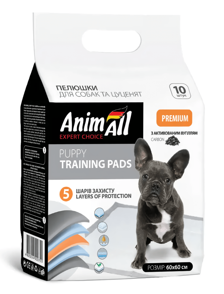 Пелюшки AnimAll Puppy Training Pads для собак і цуценят з активованим вугіллям 60 х 60 см, 10 шт