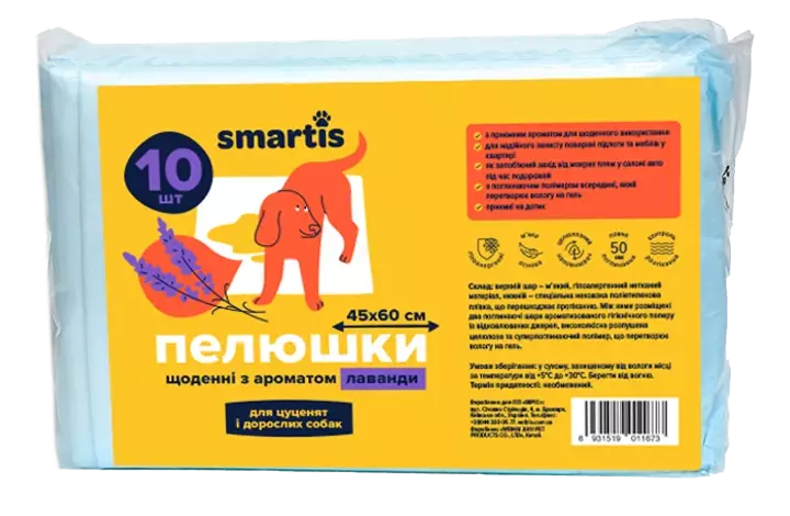 Пелюшки щоденні Smartis з ароматом лаванди 45*60см, 28г/3г (10шт)