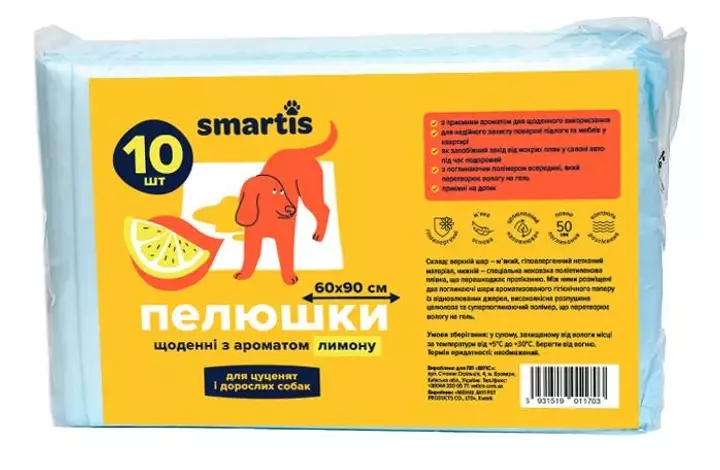Пеленки ежедневные Smartis с ароматом лимона 60*90см, 60г / 8г (10шт)