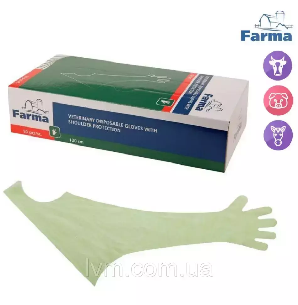 Рукавички ПЕ для штучного осіменіння з захистом плеча 120см ВРХ №50