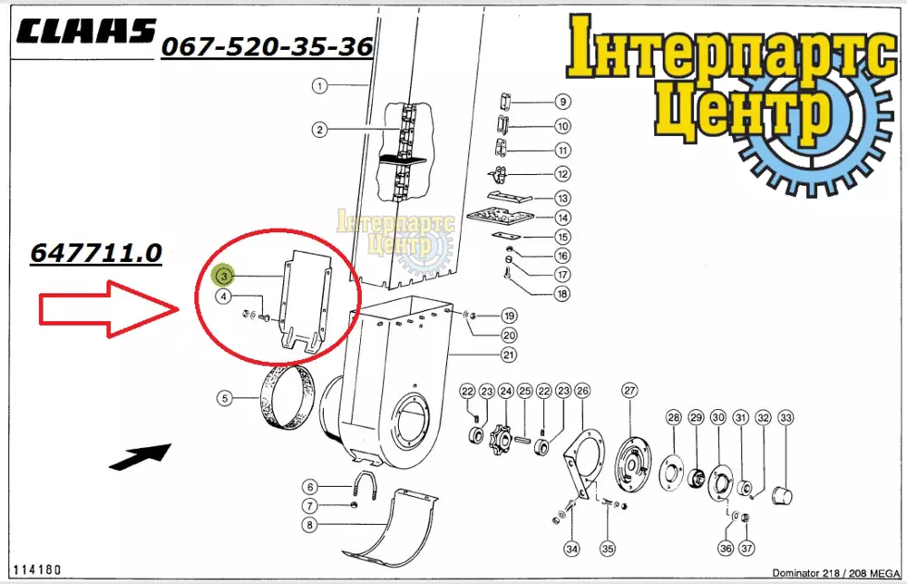 Перегородка зернового елеватора для техніки Клаас (Claas), артикул 647711.0, 647711, 6477110, 000647711, 000647711.0, 0006477110.