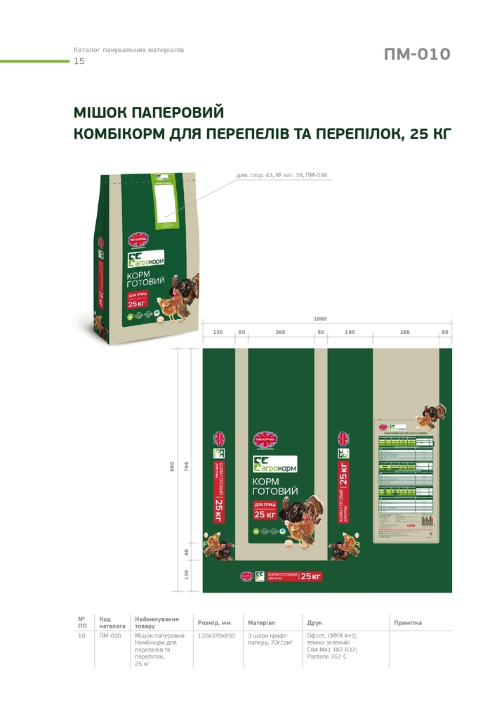 АСОРТИМЕНТ КОРМІВ ДЛЯ ВІДГОДІВЛІ ПЕРЕПІЛОК