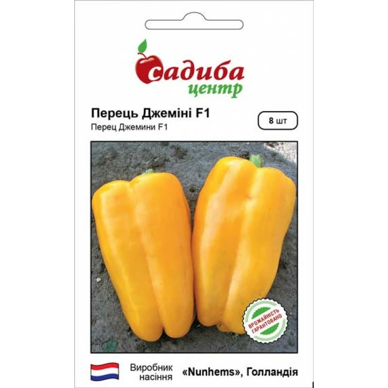 Перець Джеміні — дуже ранньостиглий високопродуктивний гібрид з потужними, прямостоячими стеблами, призначений для вирощування у відкритому ґрунті і плівкових теплицях. Продукція дуже швидко набуває товарної стиглості — на 72-78 день після висадки розсади. З товстими стінками чотирикамерні плоди кубовидно-подовженої форми в технічній стиглості мають темно-зелене забарвлення, у біологічній — яскраво-жовте. Мають високі смакові якості і гарну транспортабельність. Завдяки довгій плодоніжці плоди легко відриваються при прибиранні. Рослина добре захищає їх від сонця, одночасно формуючи по 7-10 однорідних плодів на кожному кущі, має тенденцію до дуже великих плодів. Середня маса одного перцю досягає 320-400 грам. Гібрид характеризується стійкістю до сонячних опіків, стресових умов (жари, повітряної посухи) і вірусів тютюнової мозаїки, мозаїки перцю і вірусу картоплі. Призначений для вживання в свіжому вигляді і переробки. Перець рекомендують споживати людям, що страждають цукровим діабетом, анемією, серцево-судинними захворюваннями. Споживання цього овочу сприяє розрідженню крові і зниженню тиску. За вмістом вітаміну С перець випереджає чорну смородину та лимон. Речовини, що містяться у ньому, допомагають зняти депресію, підвищують імунний захист організму.