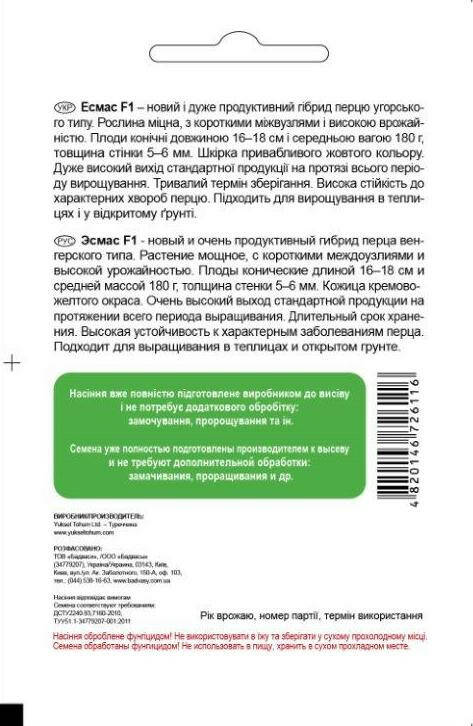 Новий і дуже продуктивний гібрид перцю угорського типу. Рослина міцна, з короткими міжвузлями і високою врожайністю. Плоди конічні довжиною 16-18см і середньою вагою 180г, товщина стінки 5-6мм. Шкірка привабливого жовтого кольору. Дуже високий вихід стандартної продукції на протязі всього періоду вирощування. Тривалий термін зберігання. Висока стійкість до характерних хвороб перцю. Підходить для вирощування в теплицях і у відкритому ґрунті.
