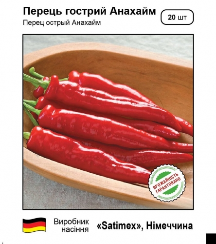 Анахайм червоний - сорт гострого перцю. Середній період вегетації. Рослина формує плоди довжиною 15-20 см. Плоди конічної форми з загостреним кінчиком, зеленого кольору в технічній стиглості і червоного в біологічній. Використовують для приготування страв і для приготування на грилі.. Подробнее на: https://semena.cc/uk/13729-anakhaim-krasnyi-semena-pertsa-sredneho-15-20-sm-krasn-satimex-sdb.html