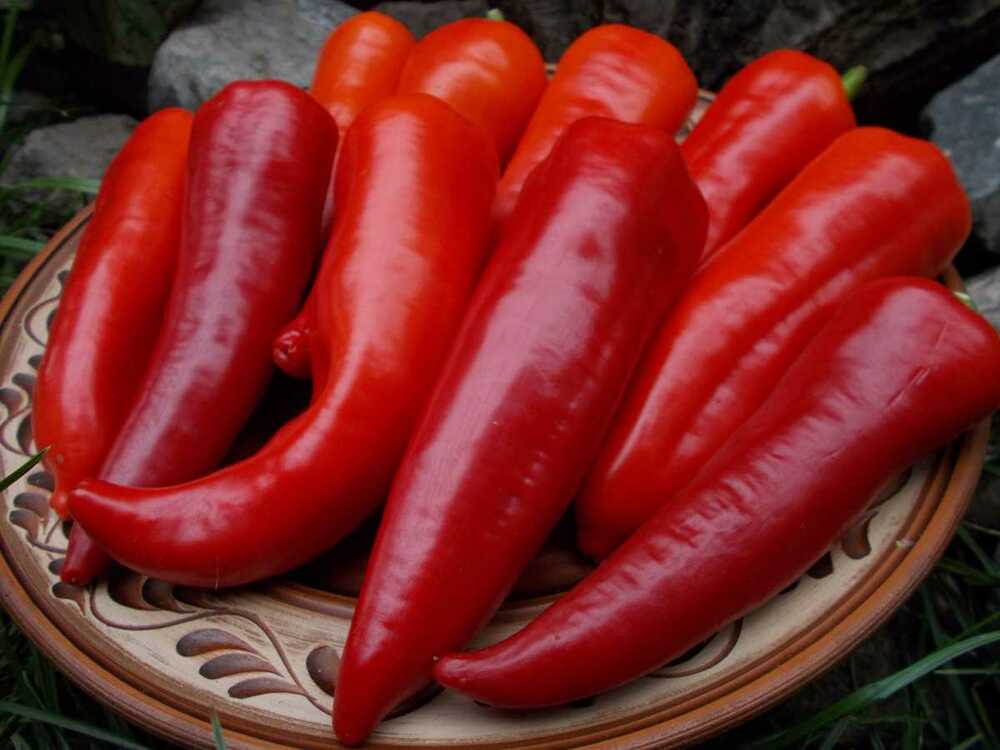 Перец " Пастух ". Раннеспелый сорт. Вегетационный период от всходов до биологической спелости 110-120 дней. Высота кустов 45-65 см. Плоды вишнево-красного цвета, удлиненно-конусовидной формы с заостренным кончиком, длиной до 20 см, массой 180-250 г. Мякоть сочная и сладкая, толщиной 7-9 мм. Сорт ценится за оригинальную форму плодов. Используется для потребления в свежем виде и консервации.
