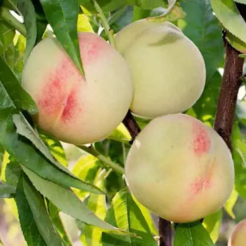 Персик "Білий Лебідь" - це сорт у котрого середньорослі дерева, гілки утворюють овальну форму крони. Шкірочка плода опушена, колір зеленувато-білий з темно-рожевим бочком. Кісточка не дуже велика, м'якоть м'яка, волокна ніжні, колір кремово-білий.