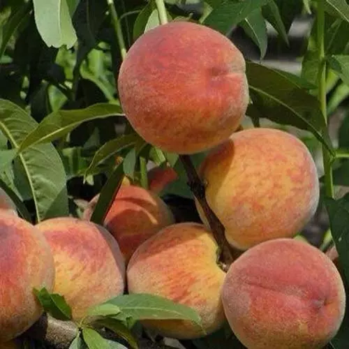 Персик Золотой Доллар - сорт персика среднего срока созревания. Американская селекция. Созревают в конце июля или раньше. Плоды средних размеров, весом около 120-150 г и более, удлиненной формы, желто-белого цвета с румянцем темно-малинового цвета преимущественно на нижней части плода. Опушение плодов среднее. Мякоть бело-кремовая, с прожилками красного цвета, очень сочная, средней плотности, высоких вкусовых качеств. Сорт относится к любительским сортам персика. Назначение плодов - потребление в свежем виде без длительных транспортировок. Деревья сильнорослые, очень урожайные. Плодоношение ежегодное и стабильное. Устойчивость к болезням персика на уровне других устойчивых сортов. Зимостойкость выше средней.