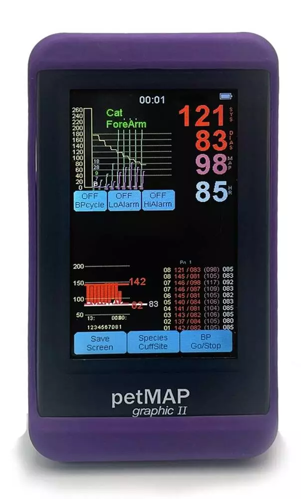 Прилад PetMAP graphic II (g II) – це компактний, легкий та портативний прилад для вимірювання кров’яного тиску, який призначений для використання у ветеринарії. Він придатний для вимірювання кров’яного тиску (артеріального систолічного, діастолічного та середнього тиску) і частоти серцевих скорочень. Вимірювані значення відображуються на приладі графічно та чисельно. Дані, що відображаються на petMAP g II, можуть бути вибірково збережені на карті пам’яті SD через вбудований слот для карт пам’яті SD. Користування приладом petMAP g II здійснюється за допомогою сенсорного екрана так само як і на багатьох смартфонах. Користувач може установити сигнали для артеріального систолічного тиску та може установити час циклу вимірювання АТ для автоматичного нагадування про початок наступного вимірювання АТ.