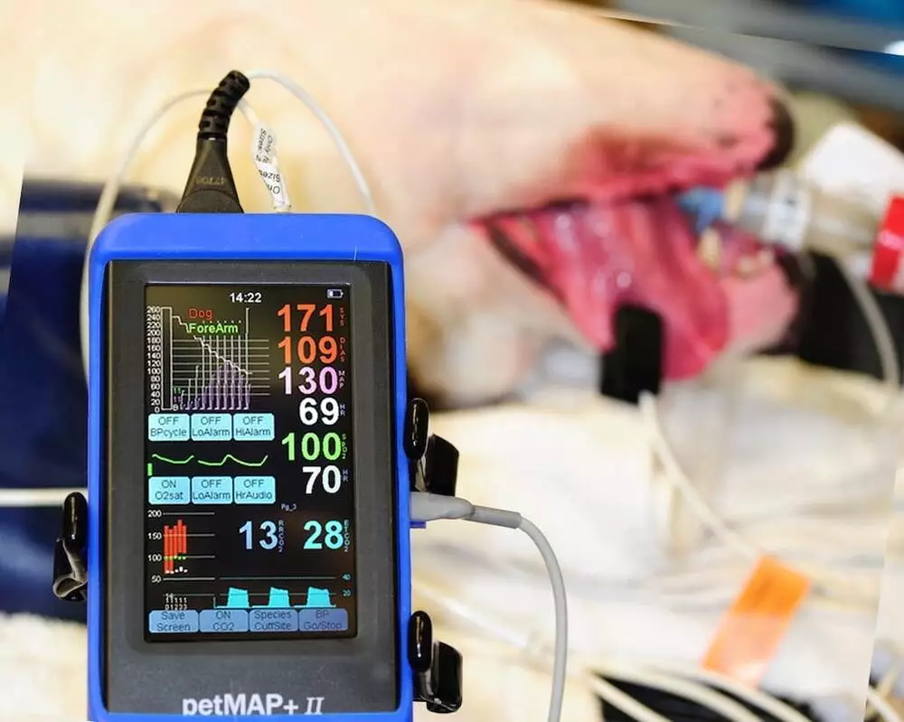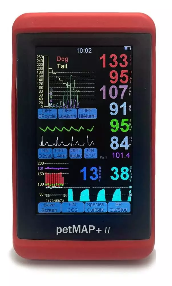 PetMap+II — це ветеринарний тонометр для моніторингу артеріального тиску, частоти серцевих скорочень, температури та сатурації (Nonin) у ветеринарії