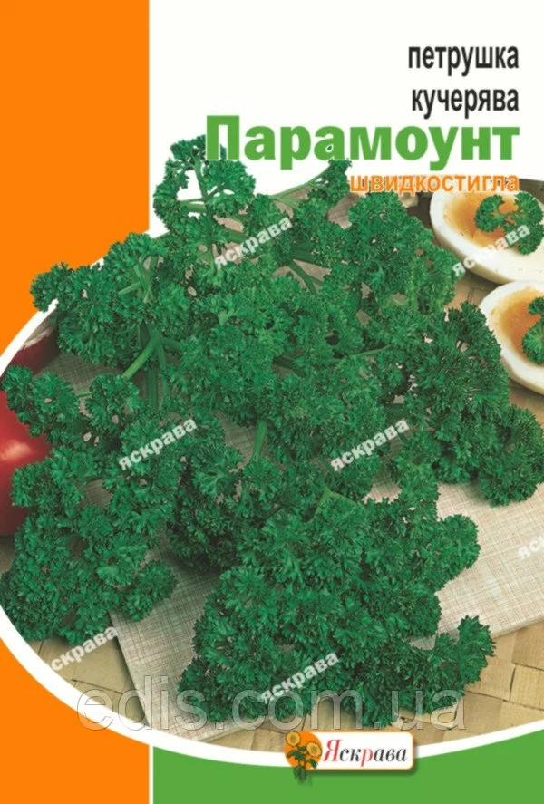 Петрушка кучерява Парамаунт 20 гРанньостиглий сорт. Вегетаційний період від сходів до технічної стиглості 60-65 днів. Розетка листя середньоросле, дуже щільна. Листя великі, темно-зеленого забарвлення, сильно гофровані, привабливого зовнішнього вигляду. Сорт цінується за інтенсивне відростання зеленої маси після зрізу. Вирощується у відкритому гунте, в плівкових наметах і в домашніх умовах. Використовується для споживання у свіжому, сушеному вигляді та для оформлення кулінарних страв.