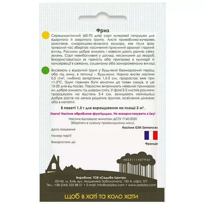 Петрушка листова кучерява Фриз - це середньостиглий сорт (60-70 днів), який ідеально підходить для вирощування як у відкритому ґрунті, так і в теплицях. Рослина відрізняється густим, кучерявим листям насиченого смарагдово-зеленого кольору, яке зберігає свій вигляд і аромат навіть після збору. Вона стане відмінним вибором для садівників і кулінарів, які цінують свіжі та корисні прянощі.