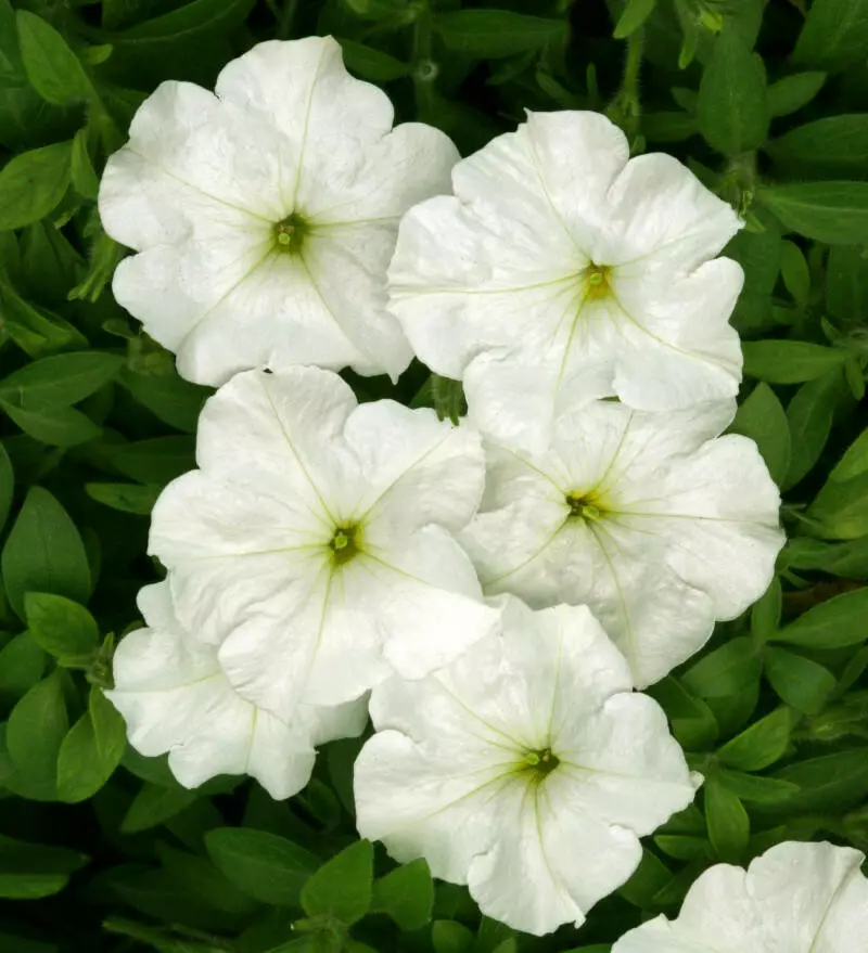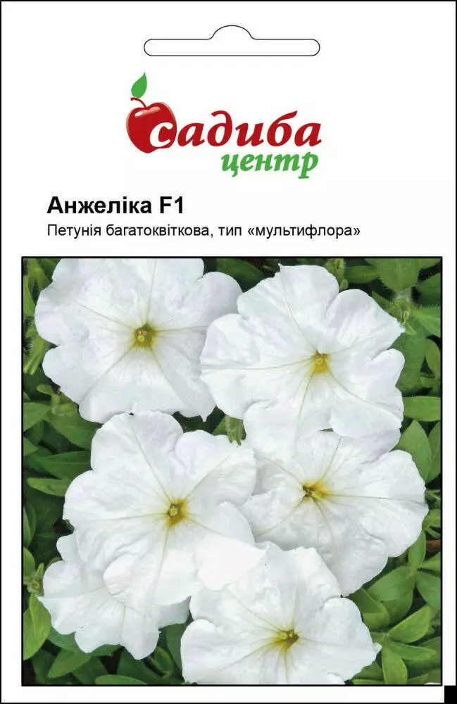 Петунія Анжеліка F1 - багатоквіткова низькоросла, однорічна петунія. Рослини утворюють невеликий кущик висотою 30-35 см, сильно розгалужені, рясно квітучі, швидко відновлюють цвітіння після дощу. Квітки білого кольору, діаметром 5,5-6,5 см. Насіння висівають у середині — кінці березня. Цвіте весь сезон, починаючи з кінця травня. Рослина стійка до несприятливих погодних умов, холодостійка, світлолюбна, посухостійка. Вирощують в квітниках (клумби, рабатки), балконних ящиках і контейнерах, в саду, в підвісних кашпо або в домашніх умовах; а також для міських посадок-озеленення.