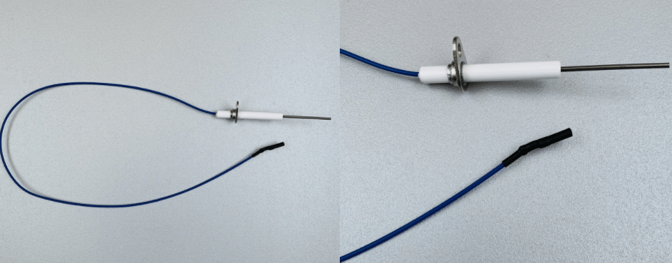 Пьезоэлектрод часть газовой пушки Master модель BLP25-30-50-53-70-73M служит для передачи искры (заряда) от пьезокнопки на газовую горелку для дальнейшего воспламенения газовой смеси. Используемые материалы: металл, керамика, многожильный медный